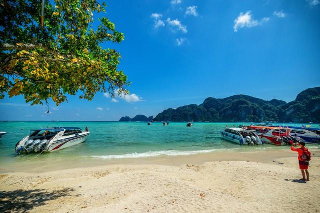 那天阳光明媚,我漫步在普吉岛的沙滩上,看着那湛蓝的海水和洁白的沙滩,心里别提多高兴了。海边有好多潜水俱乐部在招揽生意,工作人员热情地跟我说:“女士,来体验一下潜水吧,海底的世界可美啦,您一定会爱上的。”